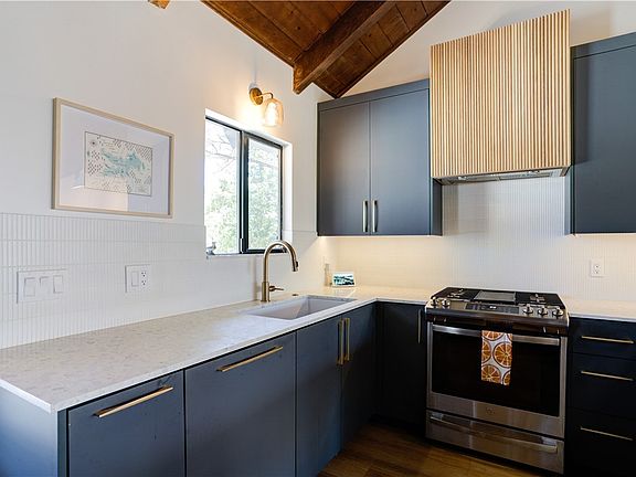 This oasis of a cabin is tucked back on a flag shape lot with ample outdoor space that is just incredible. The way the home sits on the lot makes it secluded and you feel part of the giant oak trees that dot the landscape. The home has been top to bottom remodeled in 2023 including all major systems and finishes. Interior designer finishes with a Mid-century Modern flair, this home is sought after time and time again through their AirBnb business. This short-term rental is consistently outperforming those of its competitors. 3 bedrooms, 2 baths, Hot tub, and brand new kitchen and baths. This is truly a turn-key listing. Comes fully furnished. Not to mention an EASY driveway with parking for 5 cars! You could even store an RV in the driveway.