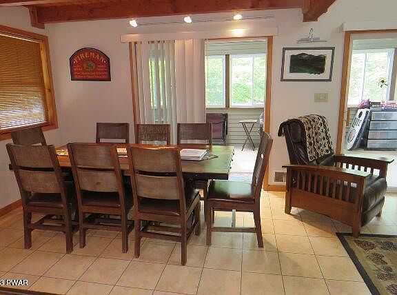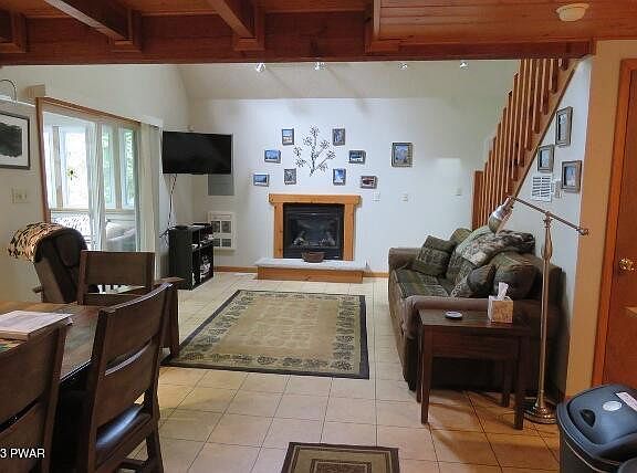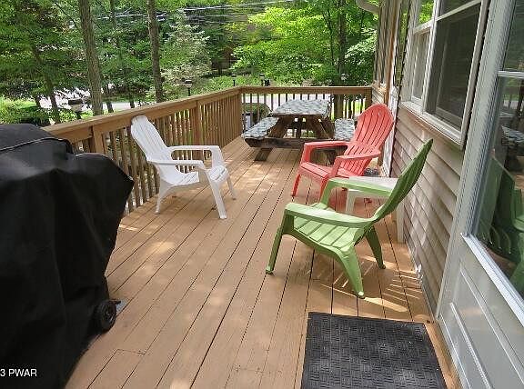 Bright and Airy Chalet, turn key and ready for new memories! Two bedrooms, plus sleeping loft, two baths, sunroom, and multiple decks. Access to Lake Wallenpaupack launch area and dock slip available on waitlist, plus two private community lakes, Beaver Lake within walking distance. Three pools, clubhouse, tennis & basketball courts, fishing, kayaking or canoeing . Enjoy a vacation everyday! Fully furnished, golf cart and paddle boat included as well! Yes, you can have it all!, Beds Description: 1 BED 2nd, Beds Description: 1Bed1st, Beds Description: 1 BED 2nd, Baths: 1 Bath Level 1, Baths: 1 Bath Level 2, Eating Area: Dining Area, Eating Area: Modern KT, Sewer: WS Comm Central