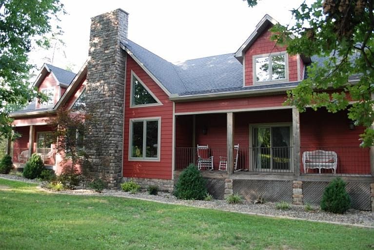 ust like a Chalet in Gatlinburg! Beautiful custom built, contemporary home on a 10+ acre secluded lot, minutes from Richmond's bypass. Features a 2 story great room with a stone fireplace, gorgeous hard wood flooring, XL kitchen w/island, bar, lots of cabinets and appliances, main floor master suite with its own private porch, 3 other bedrooms, 4 full baths, 2 half baths, family & rec. room in basement. Screened in back porch, deck and large patio for entertaining. 2 car attached garage, 2 car detached garage. This home is a must see!