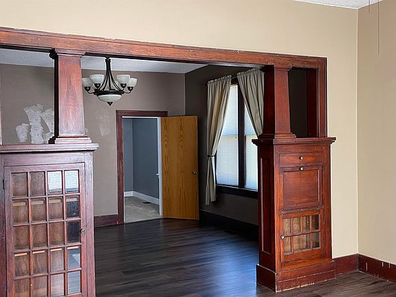 Check out this super cute 2 bedroom, 1 bath home! You won't believe the updates it has had. In 2022 a new roof, gutters, and siding were completed and in 2018 a new furnace, AC and water heater were installed. The home has a spacious feel with a large kitchen and a convenient first floor laundry. Beautiful built-in cabinets separate the living and dining rooms and there is nice flooring throughout. Large back yard with alley access, perfect for building a garage. As a bonus, a brand new, Amish built chicken coop stays!