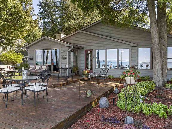 Lake Michigan's best Northern Exposure! Here is your perfect 100 ft waterfront, 3 bedroom, 3 bath home with all things you desire. Large yard, sun room, fireplace, open floor plan, granite counters, vaulted ceilings, Anderson windows, 830 sq. ft. decking, fantastic views of the Mighty Mac. Move-in ready. Garage offers man cave/workshop, all in the Village of Mackinaw City.