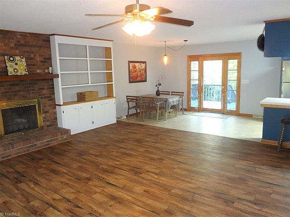 Private retreat! On a wooded 2 acre lot, this 3 bedroom, 2 bath home is located in a great neighborhood & a beautiful setting. Large front & back decks afford comfortable & scenic outdoor living space. Part of property line runs along the North Deep Creek. Inside there is fresh paint throughout the main level & easy maintenance vinyl floors throughout the house. Gas log fireplace on each level. Easy access to downtown Yadkinville & to hwy 421, & 20 minutes to Winston-Salem. Come see this special property!