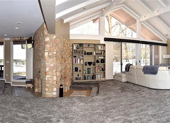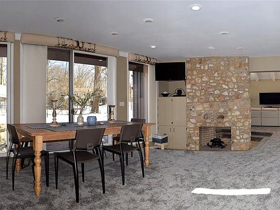 Spacious open floor plan with cathedral ceilings, 4 living areas, beautiful 2 way fireplace, 3 bedrooms, 2 1/2 remodeled baths and lots of windows to view the professionally landscaped yard. Tree lined on the east and north to provide added privacy. Gourmet kitchen with extra large island for more eating space. 3 pantries. Brand new carpeting in massive great room. Privacy patio off the kitchen and direct access to the 2 car garage. Large master bedroom with sitting area and 3 closets(1 walk-in). Recently remodeled master bath. The other 2 bedrooms are at the other end of the house. Each has 2 closets and a full bath between them. Other beautiful patios around the house. Enclosed pool with heater and roof that partially opens. Extra 3-5 car, detached garage. Extensive storage. Roof (complete tear off) and skylights replaced July 2018. Fenced area for dogs. Must see!!