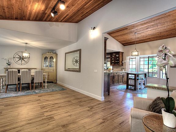 Discover country living at its finest with this 4 bedroom 3 bath ranch style home, nestled on a manageable 1.03 acres down a private road. The open and bright layout features beautiful vaulted ceilings, a classic brick fireplace in the living room, and another custom fireplace in the main bedroom. The home boasts numerous upgrades, including remodeled bathrooms, an upgraded kitchen, and fresh paint and carpet through out. The north side of the house offers a versatile 4th bedroom "granny flat" with a separate living area, bathroom and separate entrance, perfect for guests or multi-generational living. The down stairs bonus room features a large closet with built-ins and a soundproof media room, providing endless possibilities for entertainment or a home office. The lush surrounding property includes an inviting pool with a jacuzzi and trickling waterfall, fruit trees to the south and flat usable land to the north. A 4 car garage and additional gated parking large enough for an RV ensure ample space for vehicles and storage. Eco-friendly features such as NEM 2 Solar and a level 2 electric car charger make this home both efficient and sustainable. Embrace the tranquility and modern amenities of this beautiful country home.