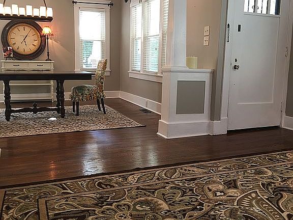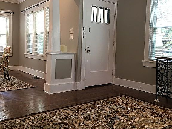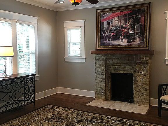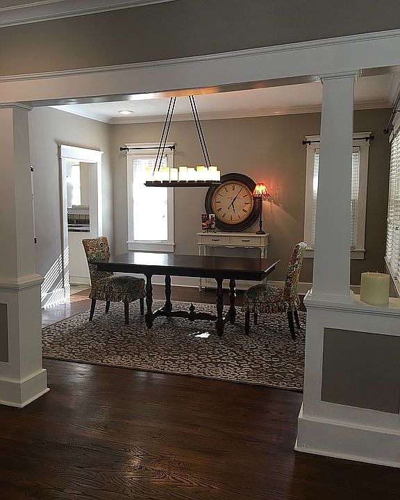 Large charming 2-story bungalow in excellent and updated condition. 5 bedrooms (master on main floor), 3 full baths. Master bedroom has huge ensuite master bath with jetted tub, separate tiled shower, double vanity, and walk-in closet. Kitchen has new cabinets, stainless appliances, exposed brick, tin ceiling, tile floor, and large walk-in pantry. 4-car attached garage, screened-in porch, large front porch, huge upstairs family room, ceiling fans, new electrical and plumbing throughout, new vinyl-clad thermopane windows, Levelor plantation blinds, newer roof and two HVAC systems, concrete driveway from street to alley, basement storage. Floors are hardwood, tile, and new carpet. New interior paint everywhere and entire exterior is clad including windows and trim for low maintenance.