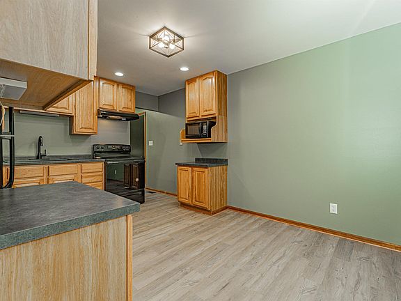 The cutest of cute! This darling three bedroom vinyl sided residential dwelling is turn key move-in ready and super sharp -- and is situated conveniently within an established neighborhood close to various amenities! The freshly renovated interior features a front facing roomy living room, beautiful fully equipped eat-in kitchen with brand new countertops and sink, three efficient bedrooms, full hall bath, and a nice sized conveniently located laundry/mechanical room area. Property also features an attached garage, extra wide concrete front driveway, rear concrete patio, 12X15 storage shed with concrete floors, electricity, and newly installed vinyl siding, Andersen windows throughout, and BRAND NEW flooring throughout, exterior doors, fixtures, fresh paint -- WOW! You will also love the expansive fenced backyard -- yet another added plus! All appliances to remain including washer and dryer. At $100,000, you simply cannot beat this dollhouse! ** AGENT OWNED **