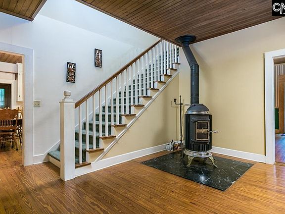 Wow! Are you looking for that authentic Country home? You need this lovely original country home with space! The main level of this house was moved from Irmo across the dam to where it sits now. OWN A PIECE OF HISTORY! The first floor of the home was built in the 40's. The second floor was built in 1988. The large porch will pleasantly welcome all your guests with comfort. Warm the family through the cool months by the pot belly stove in your over-sized living room. Cook some amazing meals in your beautiful country kitchen that truly gives a feeling of home, with tall wood cabinetry and butcher block counter tops. 10 ft charming wood ceilings are in the living room, den and the kitchen that give that open feeling you've been dreaming of. The flooring throughout the main level has authentic hardwoods. Two sets of French doors lead you outside to the expansive back porch where you can enjoy overlooking your extended wooded view to watch for deer, while sipping your coffee. Unique special features in your new home include, a claw footed tub, a telephone booth, along with berry bushes and honey suckle bushes that grow abundantly. This two acre lot sits on Red Bank Creek. Zoned for Lexington One schools. You can be so close amenities, while still having your space!