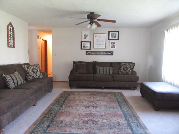 Spotless 3 br, 2 ba, 1394 sq ft ranch w/dbl gar. Open LR/DR/kitchen - newer appl. stay. Updated kitchen & master bath; spacious laundry/pantry; new HVAC in Nov 2017. Fenced yd; UGS; 12x16 newly stained deck & twin 10x16 storage bldgs... no basement.