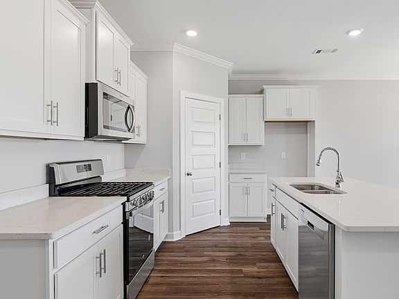 The kitchen features quartz countertops, stainless steel appliances and a spacious walk-in pantry which are sure to make meal prep easy. The island is the perfect spot for your guests to sit and visit. As we head up to the second floor, we are greeted with the spacious loft as well as two additional bedrooms and full bathroom. In every bedroom you’ll have carpeted floors and a closet. Whether these rooms become bedrooms office spaces, or other bonus rooms, there is sure to be comfort.