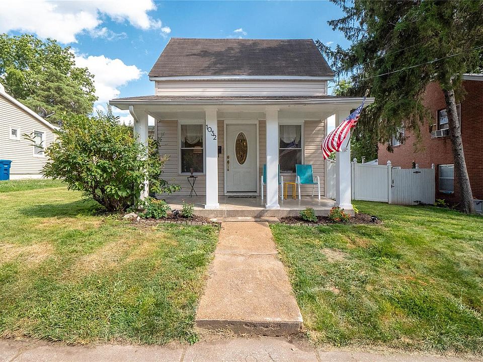Welcome to this handsome, freshly-painted, 1.5 story home located just down the street from beautiful Blanchette Park. Spend the evenings relaxing on your covered front porch or in your quiet OVER-sized backyard with vinyl privacy fence. The kitchen features new countertops, nice appliances and refrigerator that stays. The vaulted dining room is in the heart of the home and connects the kitchen and living room perfectly. There are two bedrooms on the main level with an updated bathroom. New carpeting leads you to the upper loft area great for a kids play room, game room or office. Super convenient to retail, restaurants and a great time on the ever vibrant and historical Main Street and Streets of St. Charles. Get on your bike and take a cruise down the scenic Katy Trail along the river. Washer and Dryer stay with home. Newer Air conditioner, furnace and water heater (all electric) have been up updated during current ownership.