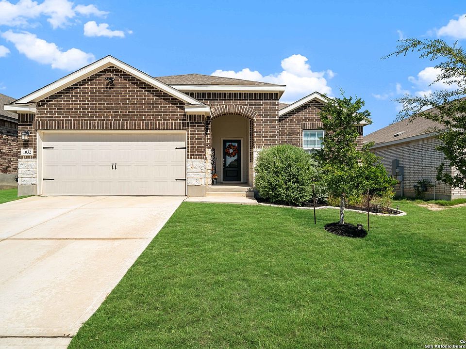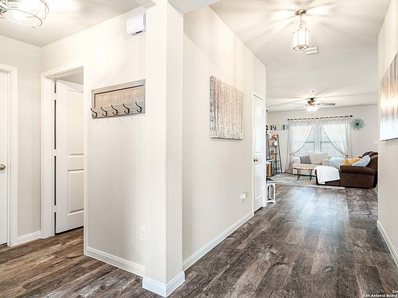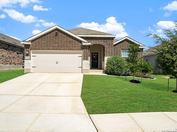 Beautiful like new single-story home located in the highly desirable, gated community of Potranco Run! This 4 bedroom, 2 bath home features an open floor plan, high ceilings, spacious living area and upgraded light fixtures throughout. The kitchen comes complete with 42" cabinets, a generous size kitchen island, stainless steel appliances, gas cooking stove, and granite countertops. The master suite is split from the other bedrooms for privacy and boasts a large walk-in closet, walk-in shower, and double vanities. This home comes equipped with a tankless water heater, sprinkler system, and pre plumbed for a water softener. The sizeable backyard features a covered patio making it ideal for gatherings with friends and loved ones. Conveniently located near schools, brand new HEB, Hwy 211, shopping, and Lackland Air Force Base. Neighborhood amenities include a pool, park/playground, and walking/jogging trails. Schedule your showing today!