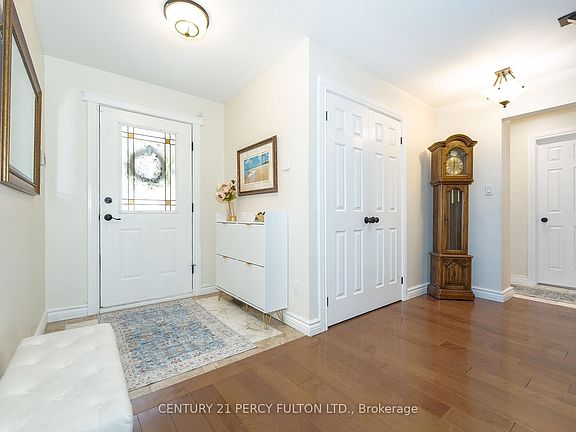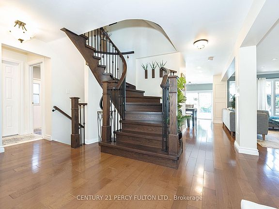 Executive, gorgeous 3-story home offering approximately 4,300 square feet of elegant living space (includes basement) on a premium deep lot in Glendale. This meticulously maintained property boasts over $300K in renovations and upgrades. Featuring a unique open-concept main floor with six-inch plank maple hardwood flooring, a gourmet custom-built kitchen with centre island, quartz countertops, and walk-in pantry, spacious bedrooms, large open-concept 3rd floor loft, and a finished basement with an extra bedroom, washroom, open recreational space and large storage rooms. The main floor includes a convenient laundry/mudroom with a side entrance. A sunken sun-filled lounge area leads out to the beautiful yard which features 15x29 heated saltwater pool, large deck, gazebo, pergola, shed, and large green space with play structures. Upgrades include: central air conditioning (2022); central vacuum; new garage door and opener with remote (2021); new front windows (2021); new furnace, humidifier, and air filter (2024); roof shingles (2019); upgraded attic insulation (2018); pool (2017); 200-amp electrical service; and new siding (2017).Elegant hardwood stairs were installed in 2022. 5 min. to the Pickering GO station. In the catchment zone of highly ranked William Dunbar elementary school. Existing survey available.