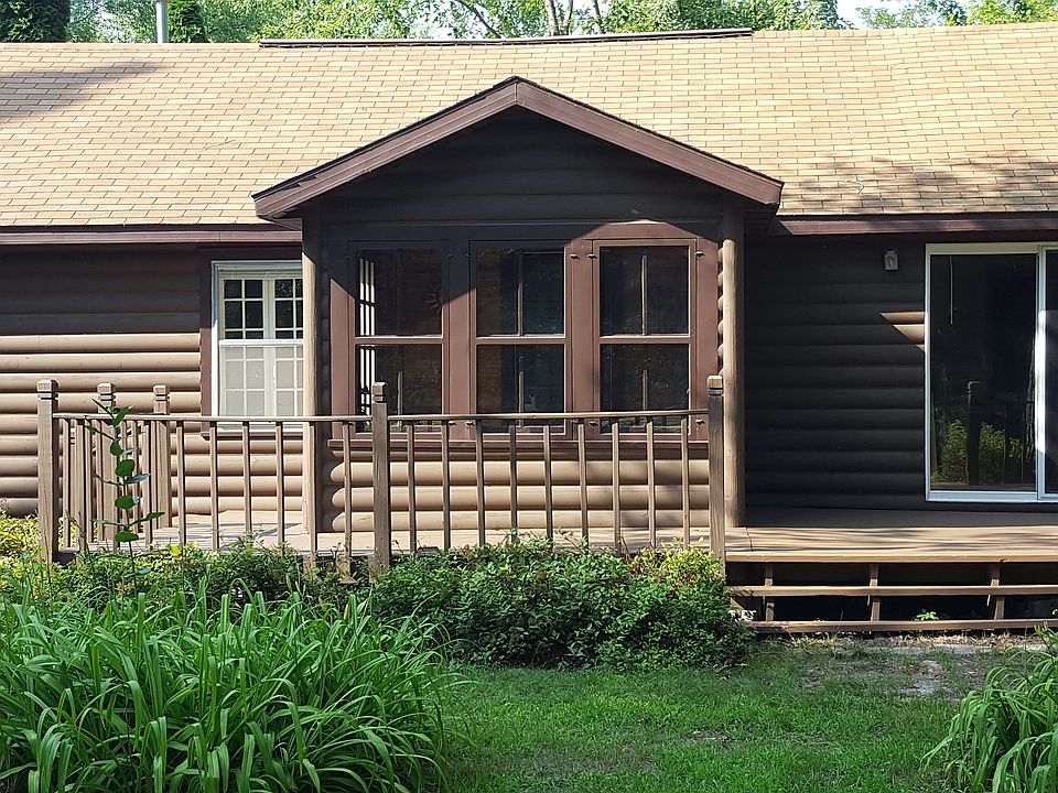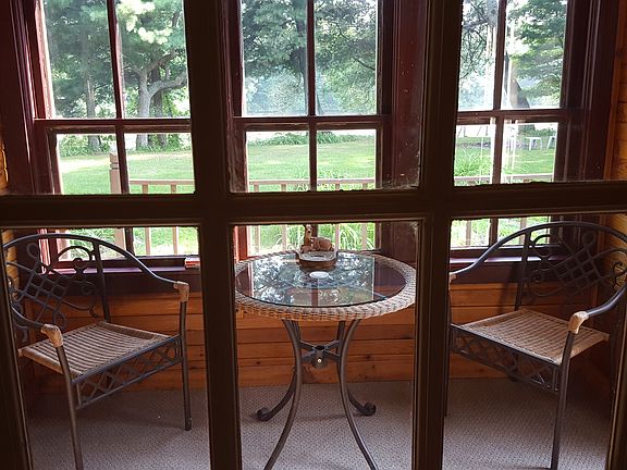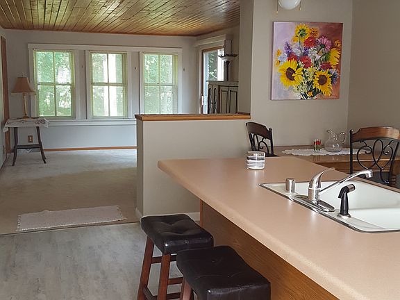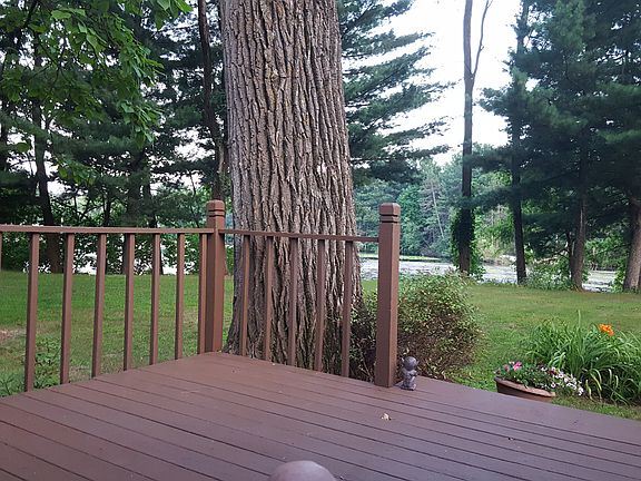 Log sided home on quiet secluded city lot. Crystal River frontage on Carey Pond. Beautiful views from kitchen, 3 season porch, deck, and living room. 2 car garage and small garden shed. Lovely large private yard. New luxury vinyl tile floor in kitchen. Sweet place!