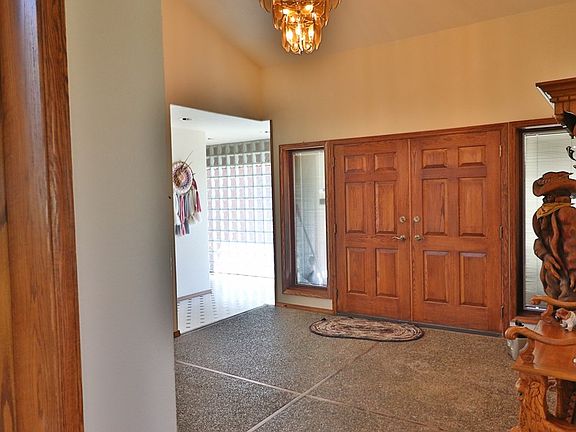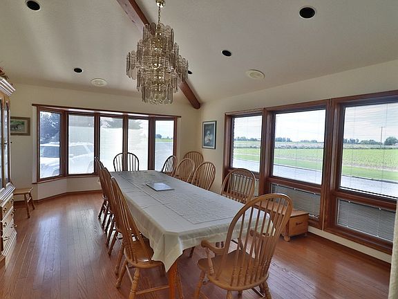 This uniquely designed home features 4347 square feet with an open living concept. The centerpiece of the home is the atrium with walls that are two stories high featuring a sauna, hot tub and wet bar. Other features a spacious kitchen, formal dining room, 2 living rooms separated by a massive moss rock fireplace and a 4 car garage. 40 acres with 38 productive irrigated acres.