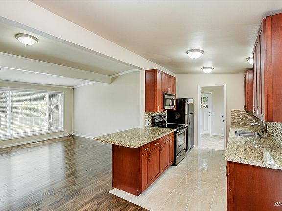 Beautifully updated 3 bed rambler in fantastic Des Moines location! Enter into your nice open living space w/ vaulted ceilings, original refinished hw floors and wired for 7.1 surround sound. Dining room w/ french doors to patio and private yard. Completely remodeled kitchen w/ granite counters, tile floors & SS appliances. Great laundry/mudroom right off kitchen. Master w/ vaulted ceilings and private full bath. Both baths remodeled w/ new everything! Roof, furnace and HW tank new in 2013. Siding is brand new hardi plank. Great corner lot w/easy commute thanks to nearby Angle Lake station & freeways, Brand new path leading from home to Des Moines creek trail. Minutes to Des Moines Marina. Brand new septic with 2 year maintenance plan!