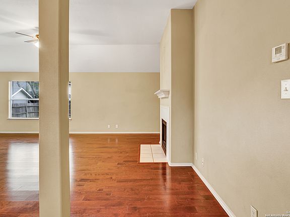 Beautiful & clean 3bd, 2ba, 1 story, 1723 sq ft, 2 car garage, open floor plan w/fire place, in Dove Meadows subdivision, Schertz TX 78154. Home includes ref, stove, dishwasher, washer & dryer. Flooring: wooden floors (lvng rm), vinyl plank flooring & tile (no carpet). Master bath has dual sinks, stand up shower and separate tub. Fenced in backyard & has a sprinkler system. Plumbed for water softener system in garage. 2 min walk to the HOA pool, BB court & baseball field. Walking distance to Watts Elementary & Jordan Middle School. 2 min drive to Clemens High School, YMCA & Schertz Public Library. 5 miles from Randolph Air Force Base, 22 miles from FT Sam Houston. Close to grocery stores, movies theaters & restaurants. Vacant & ready for quick move in.