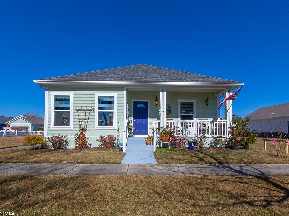 Built by Braga Designs in prestigious Cottages on the Greene Subdivision. Just off of Hwy 59 on Highway 12. Cottages on the Greene is a gated and tree lined community in Foley with beautiful landscaped streets and sidewalks. Community amenities include a large clubhouse with pool and exercise room, kitchen, and meeting rooms. Close to Shopping, Golf, and Beautiful beaches.This home will include Tile Floors throughout no carpet, Quartz Counters, Stainless Appliances and features a Large Private Master Bedroom with DoubleClosets, Decorative Tub, and Elegant Shower with Quartz and Tile Surround. This home is built to Gold Fortified construction standards. Windows are storm rated and do not require additional covering for protection. The two ceiling lamps in kitchen do not convey with this property. All information believed to be correct. Buyer or buyer's agent should verify all details.