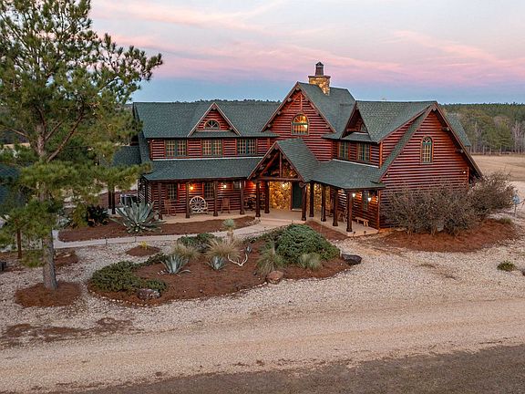 This 4,000 sq. Ft, pristine log lodge is surrounded with large windows offering views to the stocked lakes, ponds & many exotic animals that roam the grounds. Some of the animals include big whitetail, fallow deer, Axis, Red Stag, Pierre David deer, Elk, Texas Dall Sheep, Emu, Peacock and Hog. The lodge is 6 bedrooms and 5 baths and comes mostly complete with all furnishings. The seller has performed a lot of work to make it easy on the new owner such as, dressing up all interior roads, installing new roofs on living structures, fairly new A/C units, new control 4 system as well a new gate opening system. The grounds include a 9 ac. stocked lake as well as 4 additional stocked ponds. All of the ponds and lakes can be viewed from the main lodge. There are also around 10 food plots with box stands and 10 ac. duck lake. The seller even renovated the horse barn into a beautiful wedding venue. Half Moon Creek runs through the grounds offering some great views with waterfalls, fishing and even swimming holes for summer fun. You would have to see this place to believe it !!!!