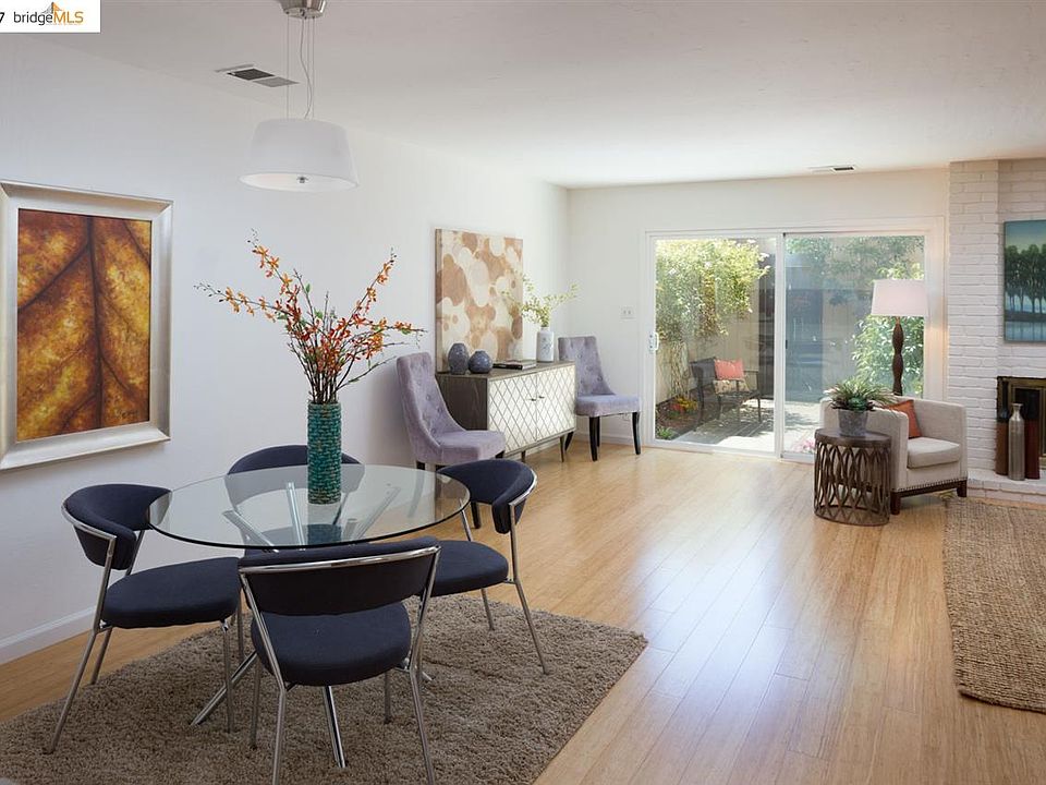 Find easy Alameda living with access to a pool and beltway gardens at 1032 Trellis Lane. This two-level townhouse features living spaces aptly set up for entertaining with new bamboo flooring, an efficiently-apportioned kitchen, open dining area, and living room with fireplace. Just out back is a private garden courtyard, which leads to the two-car garage with ample storage space. On the upper level, you'll find three bedrooms and a full bath, including a master bedroom with a large walk-in closet.