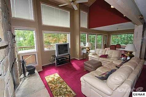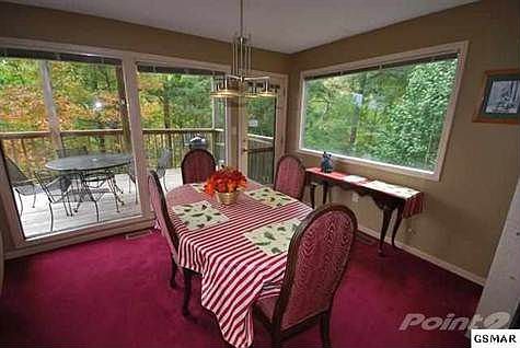 Over $25,000 rental income so far in 2012! The scenic setting with views of Mt. LeConte along with lots of native flowering shrubs and dogwoods make this a peaceful place to spend time. The level site is certainly unusual in this mountain community and it even boasts a yard. It also features abundant level parking with ample turn around room and plenty of privacy. This is a large two bedroom with two suites that are each about 23x12 and include in-suite baths,whirlpool tubs and decks to enjoy the view. Spacious great room with high ceilings and a mountain stone wood burning fireplace. Good kitchen design with an eat in bar and an adjacent game room create a nice entertaining space. Excellent rental income with $25,025 so far in 2012 & self managed thru VRBO, so no hefty management fees to pay either.
