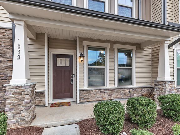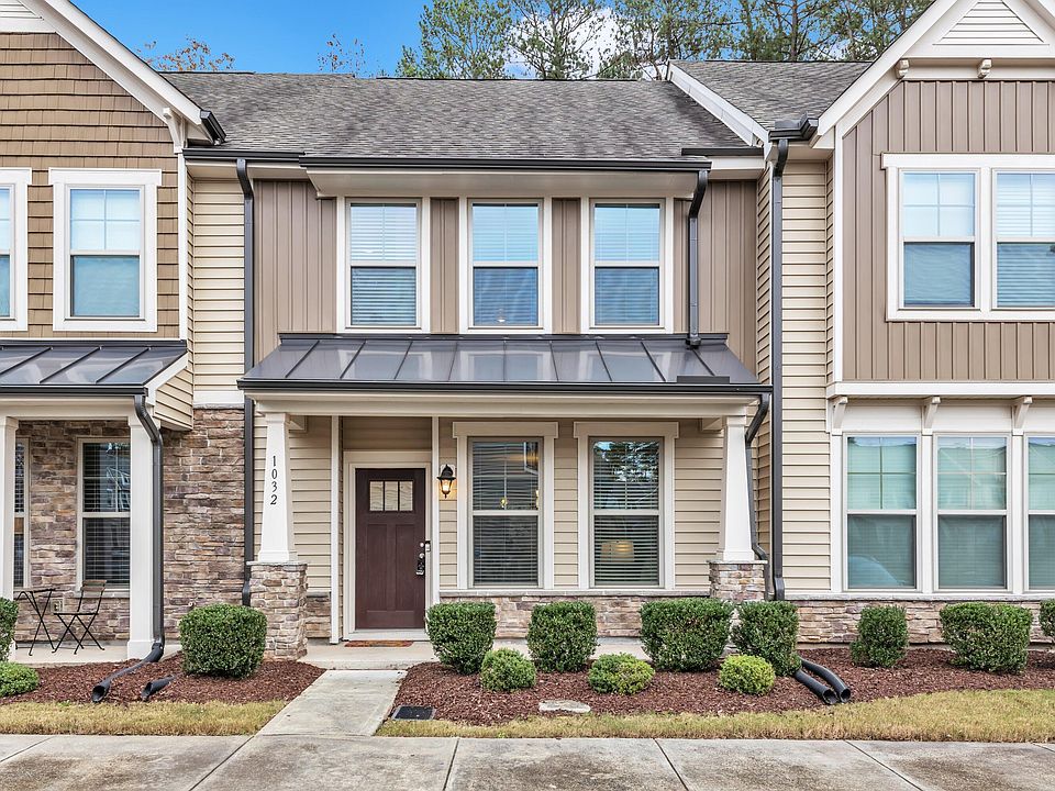 Welcome to 1032 Urbane Ct - Where Comfort Meets Convenience! This stunning 3-bedroom, 2.5-bathroom townhome, built in 2015, is packed with upgrades and perfectly located in South Durham. From the moment you step onto the charming covered front porch, you'll feel right at home. Inside, the main level features beautiful hardwood floors and a thoughtfully designed open floor plan. The kitchen is a chef's dream, featuring granite countertops, a tile backsplash, stainless steel appliances, a gas stove, a built-in microwave, and under-cabinet lighting. The large island with a breakfast bar, pendant lighting, and a walk-in pantry provides plenty of space for both cooking and entertaining. Upstairs, you'll find upgraded 2024 carpet and three spacious bedrooms, including a luxurious primary suite. The primary bedroom features a tray ceiling and an en-suite bath with double vanities, a walk-in shower with a built-in bench and niche, and a large walk-in closet. Neutral paint throughout the home creates a warm, inviting atmosphere. Additional highlights include a built-in stash station near the front door, a back patio overlooking a wooded buffer for added privacy, an attached storage shed, and tiled bathrooms. This home's location is a standout! Enjoy the convenience of a neighborhood dog park, perfect for four-legged family members. You're also just 2 miles from the American Tobacco Trail for walking, running, or cycling. Walk to Tobacco Road Brewing Co., shop at Southpoint Mall, and take advantage of the short commute to RTP, RDU Airport, and Downtown Durham. Whether catching a Durham Bulls game or dining at top-notch restaurants, you're only 15 minutes away from it all. This move-in-ready townhome combines modern living with unbeatable convenience.