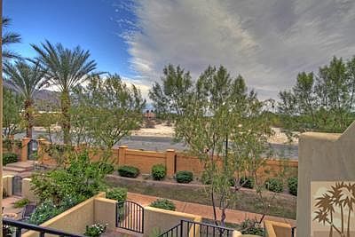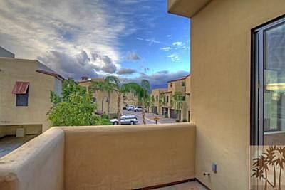 Welcome to the highly sought after community of Villorrio in downtown Palm Springs on FEE land (you own!). This desirable gated community is one of a kind & visually stunning with rolling water features throughout the grounds, water fountains, lush & mature landscape, rich cobblestone streets, smooth wall stucco exterior finishes, & gorgeous community pools, spas, & clubhouse with fitness center. These luxury townhomes with Tuscan charm offer commanding panoramic views of the mountains & have been completely redone inside with new carpet, fresh paint, cleaned inside out, & are in excellent condition. This home offers quaint courtyard entry, upgraded tile flooring, granite counters, stainless appliances including refrigerator, upgraded light colored cabinetry with hardware, fireplace in living room, an attached two car garage, main level tiled bonus room with fireplace great for game room or man cave, and upstairs deck with views! Stackable washer & dryer included. Walk to downtown!