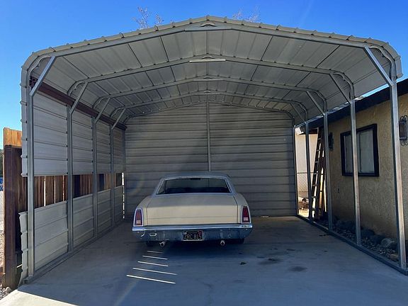 Clean and well maintained three bedroom home located in Ridgecrest heights. Plenty of parking and covered parking for storing RVs and more! Inside walls freshly painted. Kitchen counters, tile and carpet flooring all replaced a year ago. Living room offers plenty of sunshine and access to covered back patio. Den features a beautiful brick fireplace and opens to the sunny kitchen and dining areas. Master bedroom with master bath has 2 closets and a sliding door giving access to the covered back patio area. Back yard has 2 storage sheds and plenty of space to design your own oasis. Must see!