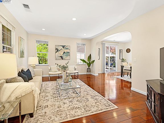 Downstairs bedroom & full bathroom. Walk to the community pool & spa. Open gourmet kitchen w/gas cooktop, slab granite countertops & backsplashes, SS Appliances, refrigerator, island with seating. Primary bedroom w/His & Hers walking closets and stall shower & tub. Upstairs laundry room! Bathrooms w/marblestone counters. Recessed lighting. Hardwood flooring. Low Maintenance side yard patio with pavers. Great Location! Just minutes to highly desirable schools, The Plaza at Gale Ranch, Monarch Park, City Center, Hwy 680 & Bishop Ranch!