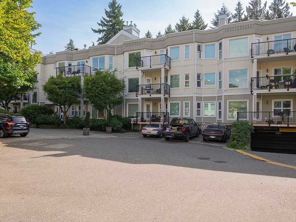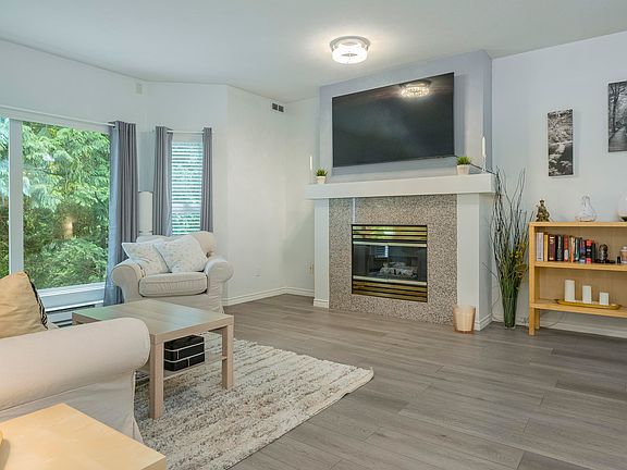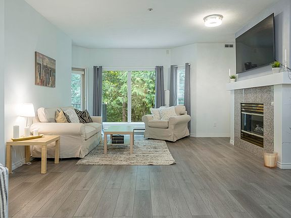Kingsbrook~ a well maintained lovely complex offers this almost 800 sq ft 1 bdrm, 1 bthrm home that is perfect for first time buyers or down sizers! Great floor plan with 9 ft ceilings! The large kitchen includes tons of white cabinetry, newer S/S appliances ( 2021) and a brand new dishwasher. Living rm has gas fireplace and leads to your amazing outdoor space. The balcony faces south so you get lots of natural light and it backs on to complete privacy with greenbelt and peaceful nature behind. Bedroom is well sized with good closet space and there is a 4 pc bath. Convenient walk in laundry area, 1 parking, and 1 storage. Building was re piped, so no Poly B! Call today to view this great home in the heart of Guildford!