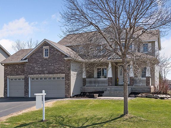 Your pursuit ends here. Up the steps, onto the porch & enter your new home. The warmth of the sun filled 2 story foyer leads you into the heart of the home. Head inside & upstairs to 4 bedrooms on one level with a secluded en suite with jetted tub & separate shower.On the main, the upgraded custom kitchen allows you to explore your culinary creations from the countertop to the grilling deck. On the deck, take in the view, inspecting the acres of greenspace. Entertain & graze from the island, relax by the fireplace, play & enjoythe calm in the large, private backyard. In the lower level you'll find an oasis at the wet bar, a fifth bedroom & a convenient walk out to the backyard. From there, miles of walking paths and bike trails on Rush Creek from the Mississippi River & Gateway park, to the Northern Trail Park and all of the way to Elm Creek Preserve. Your new home is move-in ready with a new deck, water treatmentsystem, roof, acacia hardwood floors, newer kitchen appliances & more!