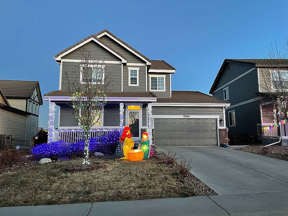 Located in the heart of Meridian Village subdivision, across from the pool and park, with Mountain View seen from the front of the home, 4 bedrooms, 4 bathrooms, 5 piece master bathroom, granite countertops, kitchen backsplash, under and over cabinet kitchen lighting, hardwood floors on the main level, open concept floor plan, walk out and partially finished basement, pergola overhang on the top deck, and outdoor hot tub.
