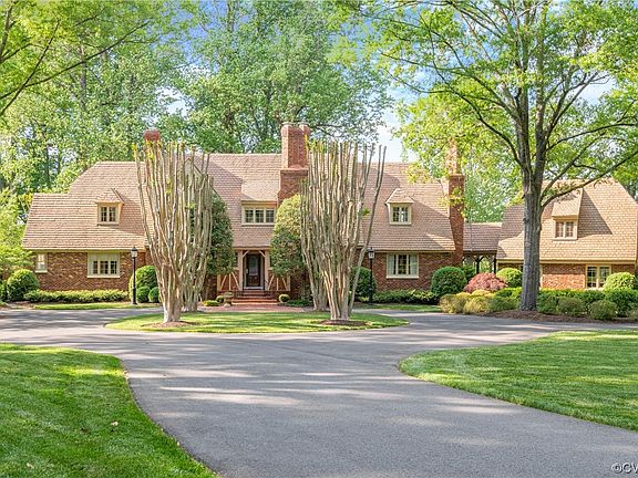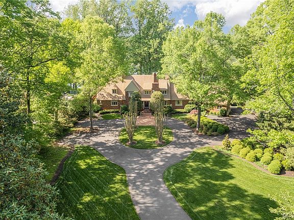 A must see! This custom cape sits on nearly 3 acres on the James River with stunning views. This home has been immaculately maintained. The foyer features eucalyptus floors laid out in a herringbone pattern with heart pine border. Flanking the foyer is grand dining room and a heart pine paneled den with fireplace. Additionally, you will find what could be a first floor primary bedroom. The sun room features floor to ceiling windows and a wet bar. The gourmet kitchen features raised panel wood cabinets, granite countertops, tile backsplash, oversized stainless sink, top of the line Wolf, Miele and Subzero. The island features a vegetable sink, two drawer dishwasher, and two SubZero refrigerator drawers. Off of the kitchen there's a mudroom with locker storage, a library with built in desk and a fireplace. The lower level includes a family room with wet bar and fireplace, Rec room has access to the back patios, fitness room with a full bath and a theater room! The second floor there are three additional bedrooms, including the primary, all three bedrooms have their own private bath and large walk-in closets. Of course, the views and access to the River are second to none.