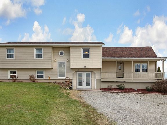 A very unique 4-bedroom, 3 full bathroom, 3-level split on 2 acres of land! The office offers versatility as a potential 5th bedroom. A detached oversized 2-car garage, with capacity for 4 cars, complements the property; featuring a professionally installed disaster shelter by Survive-A-Storm. The walk-out basement leads to a private oasis adorned with a hot tub and pool. The shed out back is heated and cooled! Don't miss out on this beautiful property surrounded by flourishing cherry, apple, pear, and plum trees! New roof (2023); New gutters and downspouts (2023); New Dishwasher (2023); Septic tank pumped and inspected (2023); 12,000 BTU Ductless Air Conditioner - Heat Pump Split System installed in Pool House/shed (2021). Complete list of updates are listed in the document section.
