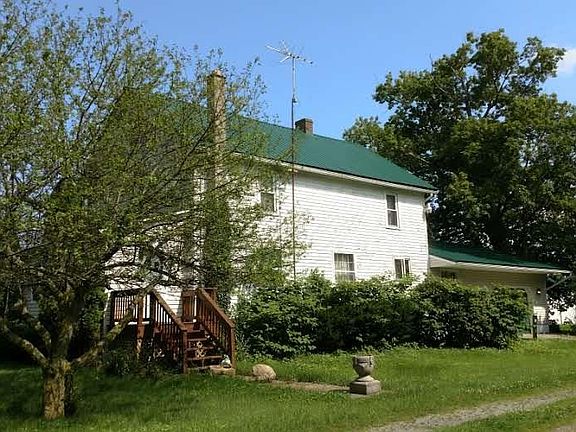 Horses welcome on this country farmhouse w/3 acres, 4 bedrooms, lots of living space. Attached garage plus barn w/ metal roof, 3 bay dog kennel w/run plus 1 stall horse barn. A Large country kitchen which leads to two tier deck. Woodstove in living room for cozy winter nights.