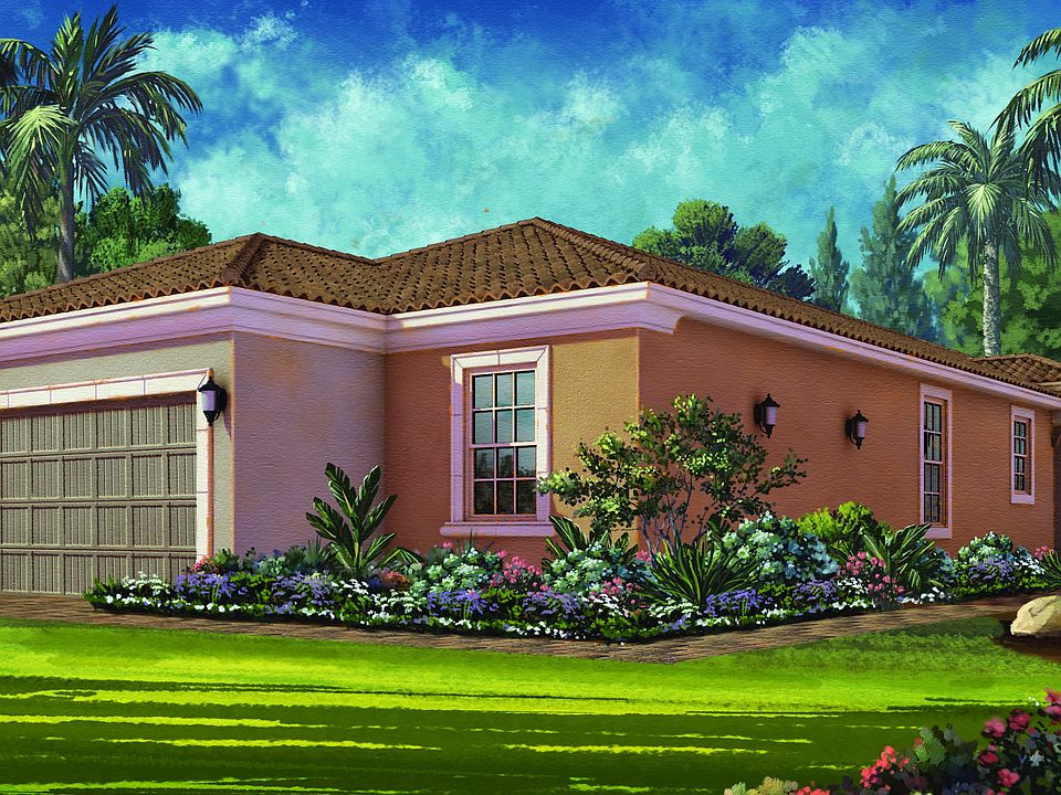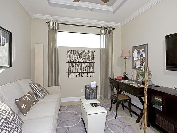 NEW CONSTRUCTION with RESORT STYLE LIVING at its best! Over 6000 sq ft club house featuring 24 hr fitness center, billiard/card room, club/craft room, and a common room, movement studio, treatment room, indoor and outdoor kitchens. The Club House is situated on nearly 6 acres of property and offers a resort-style pool, resistance pool, hot tub, dog park, fire pit, formal events lawn, and sport courts. An on-site Lifestyle Director will be on hand to interact with residents and coordinate special activities, parties and events. All lawn care including mowing, trimming fertilizing and plant replacement is included! This homesite offers a pond in the rear yard. The designer kitchen includes a quartz countertops, cherry cabinets and a gorgeous mosaic tile backsplash. There is tile flooring in all the main living areas. You will enjoy the private view from the spacious lanai. The master suite features a huge walk-in closet and the master bath offers dual sinks and large shower. This home also includes a den with French doors, 8ft doors throughout the entire home and the garage has been extended by four feet.