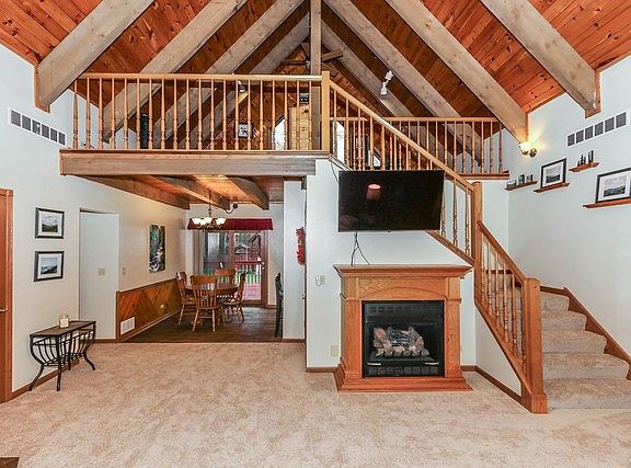 Be prepared to be impressed! SPECTACULAR Custom Cedar log home in a quiet wooded setting with FOX RIVER RIGHTS. Family Room features include soaring, knotty pine tongue and grove ceiling with exposed beams, built-in custom glass shelving and BRAND NEW carpeting! Gorgeous GOURMET KITCHEN includes double-ovens, 5 burner stove top, breakfast bar, appliances (2015), hardwood floors, eat-in area and glass door to expanded HUGE DECK! LARGE 1st floor MASTER SUITE boasting a unique eye-catching ceiling design and rope lighting, walk-in closet and full bath! 2nd & 3rd bedrooms on other side of home also feature unique knotty pine walls and share the full bath! FULL unfinished basement has bath roughed-in and is ready for your finishing touch! LARGE LOFT with dramatic knotty pine ceilings, hardwood floors and large sun filled windows is perfect for home office or convert to 4th bedroom! Private FENCED in backyard! HEATED 3 1/2 car FINISHED GARAGE! Wood blinds throughout a year old! Brand New carpeting throughout! Roof 2011! Central Air 2015! Hot water heater 2019! Newer well pump! All this and there is a voluntary association that cost $40 and you will be able to enjoy the property along side the Fox River that allows fishing, picnicking, has a sandy beach and swing set! A convenient boat launch is also available for $35 a year unlimited access! A LOG home and River Access..... This is a home you don't want to miss!