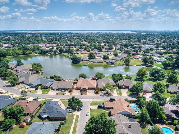 Amazing Waterfront Oasis on Eagle Lake – Resort-Style Living in the Heart of OKC! Discover the ultimate entertainer’s paradise with this perfectly positioned on the water with breathtaking views of Eagle Lake—fully stocked with trophy-size fish, your own private dock, huge deck, private backyard retreat featuring a resurfaced gunite pool, newer pump, hot tub with newer heater, and a fully equipped cabana house complete with a new outdoor kitchen and private outdoor pool bathroom. Inside, two spacious living areas showcase wood flooring, new tile, built-ins, and 3 additional fireplaces. The open concept kitchen is outfitted with a 6-burner stove, Bosch dishwasher, double ovens, new coffee bar area, ample cabinetry and a great pantry. The primary suite features a private fireplace, spa-like bath tub and separate shower, double vanities, endless mirrors and private patio access. Roof and gutters replaced 2023, newly renovated moody bath with giant rain shower, 3 car garage with extra parking featuring a storm shelter. Schedule your showing today for this RARE find!