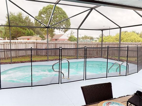 Come relax in your own POOL!! This 3 bedroom, 2 bathroom, 2 car garage home is located in the quiet neighborhood of Jasmine Trails. This home is situated on an oversized lot with plenty of yard and a 6 ft privacy fence. The pool lanai is screen-enclosed and the front porch is also screened and covered adding lots of living space! The master bedroom boasts an en suite bathroom and walk-in closet. This well-maintained home features laminate wood flooring and ceramic tile... no carpet for easy cleaning! A NEW ROOF is being installed now and will be completed by closing! Sellers offer a HOME WARRANTY. This is a No flood zone. No CDD. LOW HOA fee of $37/month includes clubhouse and community pool. Access to store your boat/RV in secure parking near the clubhouse for an additional $20.00 per month.