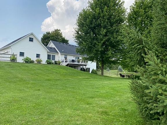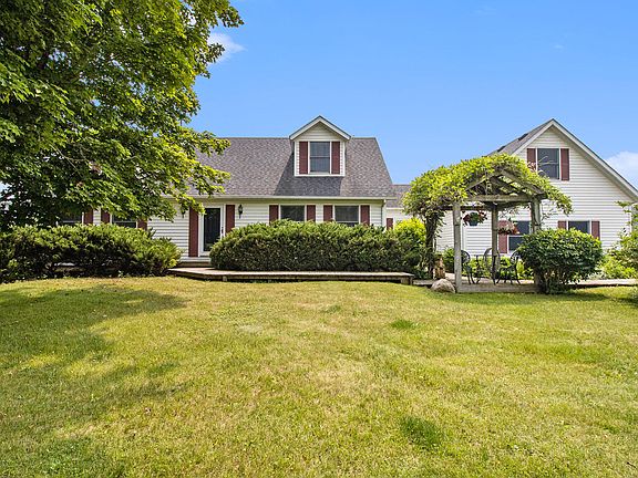 Dare to dream? This 3 bed 2.5 bath two story home overlooks beautiful rolling farm land. This 11 acre hobby farm could be your piece of Pure Michigan! Main floor primary suite, laundry with 1/2 bath, spacious living & family rooms, wood floors, beautiful kitchen w/ granite counters & views to the South. Dining area with slider to rear trex deck overlooking the fenced yard, garden & chicken coop. Off the kitchen is a mudroom w access to the garage with a full staircase to the large storage loft. On the 2nd floor you will find 2 additional bedrooms and a full bath. The walk out lower level has a huge rec room with wood stove, a large storage room & work shop and lots of windows for extra light. The 24x40 barn has a workshop with a wood stove and a large work area. See photos for floor plans