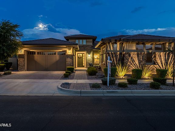 Delightful Upgrades in this amazing Eastmark home! An entertainer's Dream w/ a Resort Style backyard including Pool/Spa, Fire Pit area, & Exotic Travertine Deck. Coved Patio w/Pergola extension - + mounted TV & cozy space heaters!. Large Chef's Kitchen w/plenty of cabinetry, expansive granite counters & Center Island, Double Oven, pantry & more! Formal and Informal Eat-in Dining spaces + breakfast bar! Fridge, Washer & Dryer included for a turn-key setup. Spacious Great Room style floorplan w/room to spread out! 3/2 config w/separate Den, AND a large Bonus Room with sep entrance - prime for a business, Home Gym or a Suite conversion to a Guest/MIL unit. Master includes a Luxury bath w/Dual sinks + large walk-in shower. Owned Solar is a HUGE Plus for affordability! Come see!