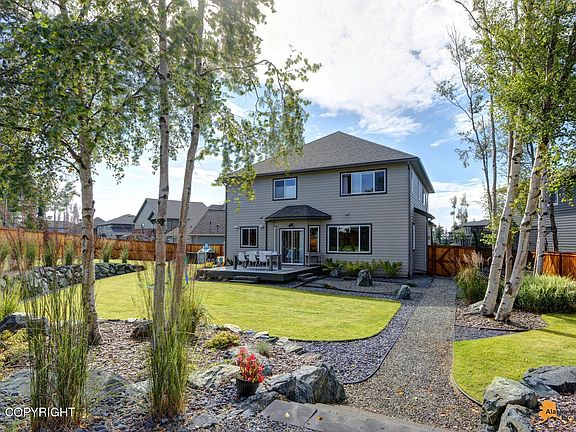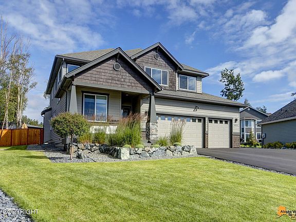 Stunning Resolution Pointe home with inlet views on sought-after Prince Willaim Circle. All 5 bedrooms upstairs to include primary ensuite with W/I shower, jetted tub and spacious W/I closet. 2 additional bathrooms upstairs including 1 jack-and-jill.Main level with dedicated office, formal dining/ flex room that can double as a playroom and 1/2 bath. Family room with fireplace and built-insopen up to the dining nook and kitchen. Large kitchen with 81"x51" quartz island, Viking SS appliances and a W/I pantry. Well-designed mudroom off kitchen with built-ins lead you to the expansive 3-car garage with ample storage. Access to back deck from dining nook with landscaped/ fully fenced yard, custom greenhouse and firepit area with seating. Additional features include surround sound, speakers on the back deck, natural gas plumbed, prewired for 220 in the garage and back of the home and wired Christmas light switch from inside to the exterior. Don't miss this opportunity to live in one of Anchorage's most desirable neighborhoods.