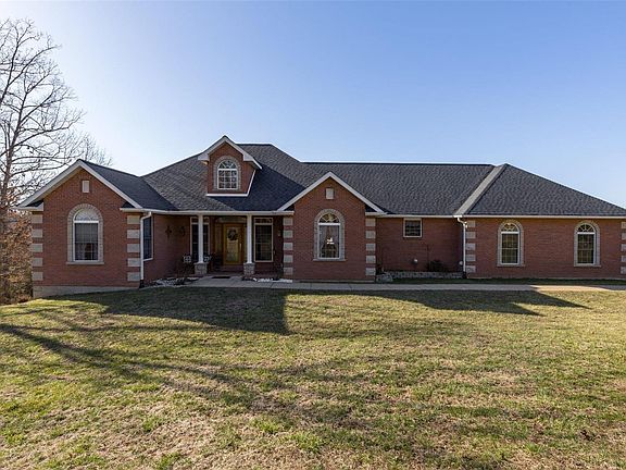 Stunning brick and stone home on 4.68 secluded acres just outside Terre Du Lac, offering both privacy and convenience with Terre Du Lac access and utilities. This impressive 4,600 sq. ft. residence welcomes you with striking stone pillars and meticulous landscaping. Inside, the living room features hardwood floors, a 13' vaulted ceiling, and a beautiful stone fireplace. The spacious primary suite boasts a coffered ceiling, a luxurious bath with custom cabinetry, a Jacuzzi tub, and a large tiled shower. The kitchen is a chef’s dream with Granite countertops, custom maple cabinets, and stainless steel appliances. Enjoy meals in the formal dining room or the bright breakfast area. You can relax in the sun room taking in breathtaking views of Lake Shayne and the rolling Missouri hills. As part of Terre Du Lac, this property also provides access to 16 lakes and 2 golf courses. This exceptional home is a rare find—schedule your private tour today! Additional Rooms: Sun Room