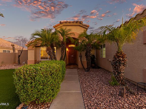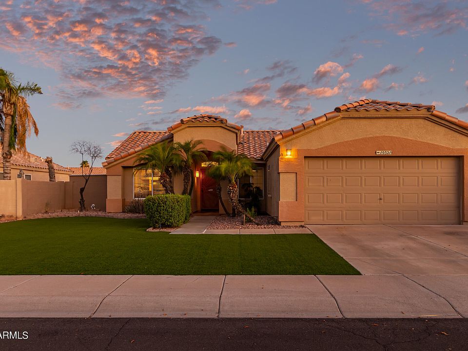 The search is finally over! This delightful 3-bedroom, 2-bath residence is complete with an air conditioned 2-car garage, an RV gate, and pristine artificial turf. The living room boasts vaulted ceilings, a neutral palette, blinds for privacy, durable tile flooring, and a two-way fireplace for relaxing evenings. The eat-in kitchen comes with abundant wood cabinetry, recessed lighting, built-in appliances, and a central island with wood counters and a breakfast bar. The cozy main bedroom offers an ensuite with dual sinks and a walk-in closet. Outside, the backyard is a lovely space to enjoy sunsets, featuring a covered patio, a storage shed, and natural turf. Don't miss out on this fantastic opportunity!