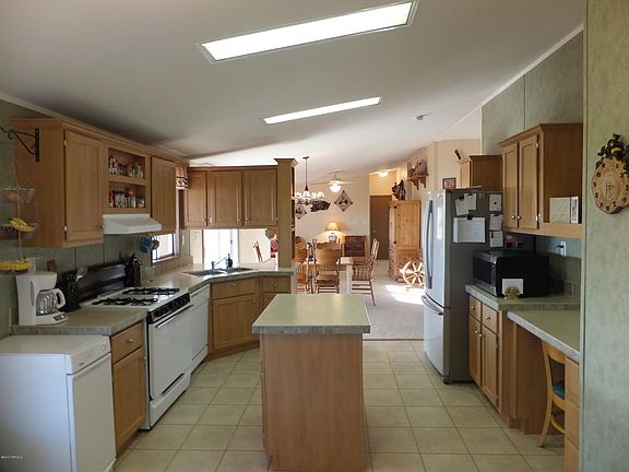 Perfect Panther Peak views in Picture Rocks. One undeveloped lot away from the Saguaro National Monument. This impeccably kept 3 Br 2 Full Bath 1728 sqft. '04 Palm Harbor doublewide has brand new 16 seer rated Rheem GasPac A/C & heat + masonry skirting & steps, walk-in closets in every BR(his & hers in the Master Suite), 3 ceiling fans + large kitchen w/center island, pantry + work station & extra cabinets. 749' of 6' chain link fenced artistic acre oasis that has walking trails w/ceramic inlay benches & iron furniture & sculptures, ceramic vases & plant pots, 2 fire pits + covered 18x44' RV parking or 3 car carport, large 23x37' ramada play area, 12x16' workshop/tack rm + round pen & horse shade, fenced dog run and much more. Hurry, this one won't last much longer.