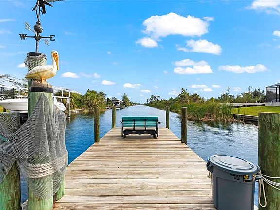 Enjoy stunning water views from nearly every angle of this beautiful home, where the tranquil canals frame each day with peaceful reflections of water and sky. Set on just under an acre across THREE LOTS, this custom-built, meticulously maintained residence offers the perfect blend of space, privacy, and relaxed boating lifestyle. With 100 feet of concrete seawall and a dock, you’ll have direct access to open water with no bridges, making this a true haven for boating and outdoor enthusiasts. Step inside to a welcoming formal dining and sitting area, filled with natural light from a large picture window and pocketing sliding glass doors. From here, enjoy views that stretch straight down the canal, as well as glimpses of another peaceful waterway across the street, creating an open, airy feel and a seamless connection to the outdoors. The spacious kitchen offers abundant cabinetry, generous counter space, and a functional layout that makes cooking and entertaining effortless. Overlooking the canal and opening to the main living areas, it’s the warm heart of the home where family and friends naturally gather. The family room features sliding glass doors leading to the lanai, filling the space with natural light. A fireplace adds a cozy touch, perfect for relaxing or entertaining on cool evenings. The split floor plan ensures privacy for everyone, with guest bedrooms and a full bath on one side, and the primary suite tucked away on the other. The primary suite provides beautiful canal views, direct access to the pool, and a serene, light-filled atmosphere. The ensuite bathroom features a walk-in shower, dual vanities, and a private water closet. Step outside to a park-like landscape filled with fruit trees, avocado, mango, banana, dwarf banana, and dragon fruit—plus a small garden with tomatoes and pineapples. A durable dock and irrigation system covering all three lots keep the property lush and pristine. Major updates bring comfort and peace of mind, including a 2023 METAL ROOF, gutters, and soffits, along with fresh interior paint (2023) that gives the home a crisp, modern feel. The pool and spa area has been thoughtfully refreshed with a NEW CAGE and CLEARVIEW SCREEN (2024), a RESURFACED POOL (2016), a POOL HEATER (2020), and a POOL PUMP (2023)—perfect for year-round enjoyment. Additional updates include a 2025 AC system, a 2022 WATER HEATER, and tile flooring throughout. Located just 10 miles from Boca Grande’s pristine beaches and close to top golf courses, great restaurants, shopping, and world-class fishing, this home offers the ideal blend of waterfront serenity and coastal convenience.