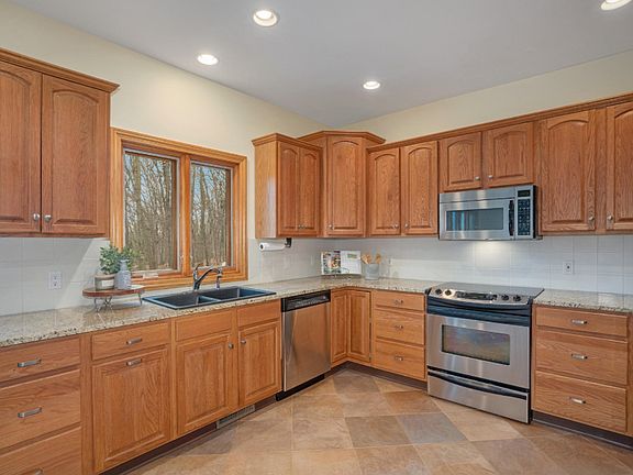 Wonderful 3 bedroom, 2.5 bathroom, ALL BRICK ranch on 2.9 acres in the prestigious East River Shore Estates. This home sits on a gorgeous lot with great views of the woods and glimmering of the creek. Some of its features include: 9' ceilings on the main floor, kitchen with granite countertops, ceramic tile flooring, walk-in party & built-in desk; quality Pella windows throughout, new 96.5% high efficiency furnace in 2020, new refrigerator, daylight basement with 9' ceilings including a family room and bedroom that only need ceilings and flooring for completion, tons of storage, workshop area, second stairway from garage to basement, 16 kW Generac generator w/auto transfer (installed 2019), a large 866 SqFt 3-stall garage, 2x6 construction with R19/R38 and more! Schedule a showing today!