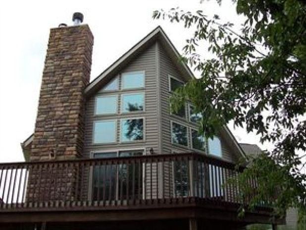 GREAT VIEWS FROM 1 1/2 STORY A-FRAME ON PARTIALLY WOODED 1.98 ACRES. 2 ST. GR. RM. HAS A WALL OF WINDOWS WITH A VIEW FROM LR & DR. WRAP AROUND DECK OVERLOOKING WOODED RAVINE. 3 BR, 2.1 BA., SECOND FLOOR MASTER BR., BATH & LOFT PROVIDE A QUIET RETREAT. NEWER PERGO KICHEN FLOOR. STAINLESS APPLIANCES, CHERRY CABINETS, BREAKFAST BAR BUILT IN WINE RACK & TRACK LIGHTING. QUICK POSSESSION AVAILABLE