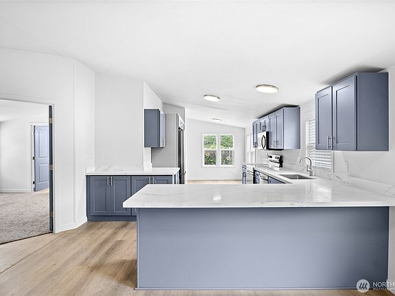 Enjoy modern comfort in this fully renovated 3 bed, 2 bath double-wide in quiet Delphi Mobile Home Park. Updates include new roofs on home and shed, updated siding, new flooring, blinds, and a stunning kitchen with stainless steel appliances. Both bathrooms feature quartz showers. Just 15 minutes to Olympia and located in the desirable Tumwater School District. Lot rent is $715/month. Move-in ready with all the stylish updates you’re looking for!
