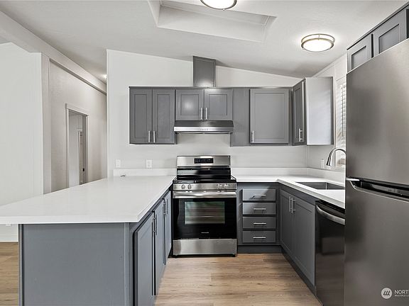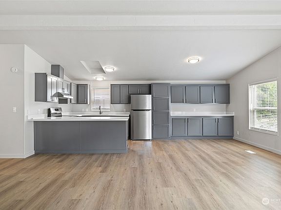 Newly remodeled mobile home in Tumwater! Experience your dream layoput in this delightful 2-bedroom, 2-bath double-wide home. The property boasts numerous upgrades, including a new kitchen, updated flooring, fresh blinds, new windows, renovated bathrooms with quarts in the shower, and stainless steel appliances. Located in the serene Delphi Mobile Home Park, this home also features a large storage shed, great yard space, and two parking spots. Conveniently situated just 15 minutes from Olympia and within the Tumwater School District. Lot rent $650/month. Begin your next chapter in this move-in ready gem!