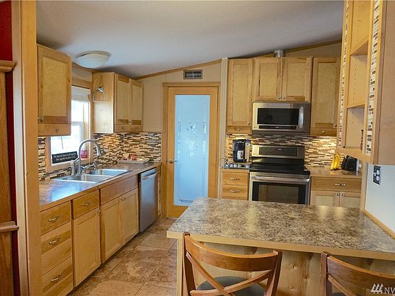 Affordable, well maintained 3 bedroom, 2 bath home includes vaulted ceilings, updated kitchen with custom cabinets, master bath with soaker tub, accessible entrance ramp, heat pump, new flooring, and more! Stainless steel kitchen appliances all stay. Three sheds on the property provide lots of storage - one of the sheds currently functions as a workshop with electricity and lighting. Back deck with additional storage closet. Located in Tumwater School District. Come see your new home today!